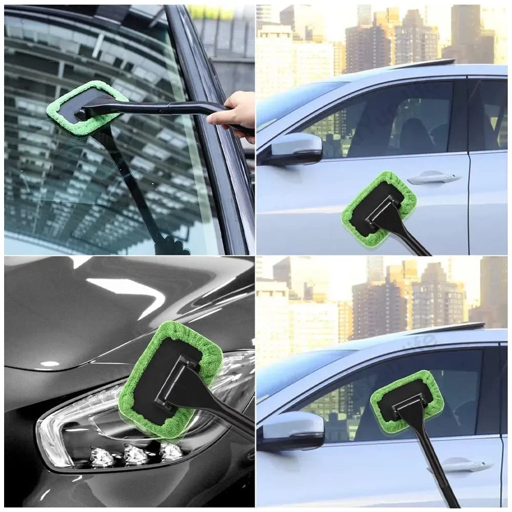 This car window cleaning brush is designed to keep automotive glass clear and spotless. The long handle helps reach tight and angled areas of the windshield. A microfiber cloth pad lifts dust, dirt, and grime with ease. The soft material is gentle and safe on glass surfaces. It works effectively on interior windows and exterior glass. The reusable pad can be removed and washed for repeated use. Its lightweight construction allows comfortable handling during cleaning. The tool helps reduce streaks and improve driving visibility. It is suitable for cars, trucks, SUVs, and vans. The compact design makes storage simple inside the vehicle. It is ideal for everyday cleaning and detailing tasks. This windshield cleaning tool offers a convenient solution for maintaining clean auto glass.