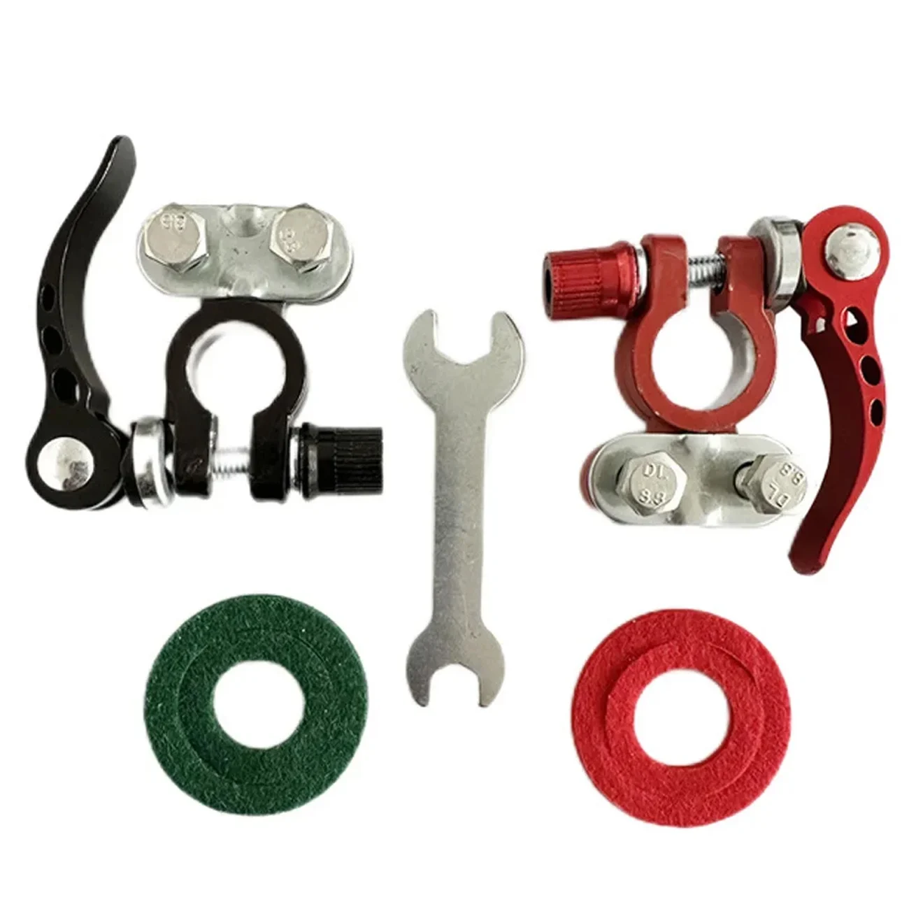 These quick release car battery terminal connectors are designed for fast and easy battery connection and disconnection. The set includes two terminals for positive and negative battery posts. They support both 12V and 24V vehicle electrical systems. The quick-release design allows tool-free installation and removal. These connectors help simplify battery maintenance and replacement. Durable construction ensures stable conductivity and reliable performance. They are compatible with SAE and JIS type car batteries. The secure grip helps prevent loose connections and power loss. Ideal for cars, trucks, and other vehicles requiring frequent battery access. These battery terminal connectors offer a convenient and safe solution for efficient battery management.